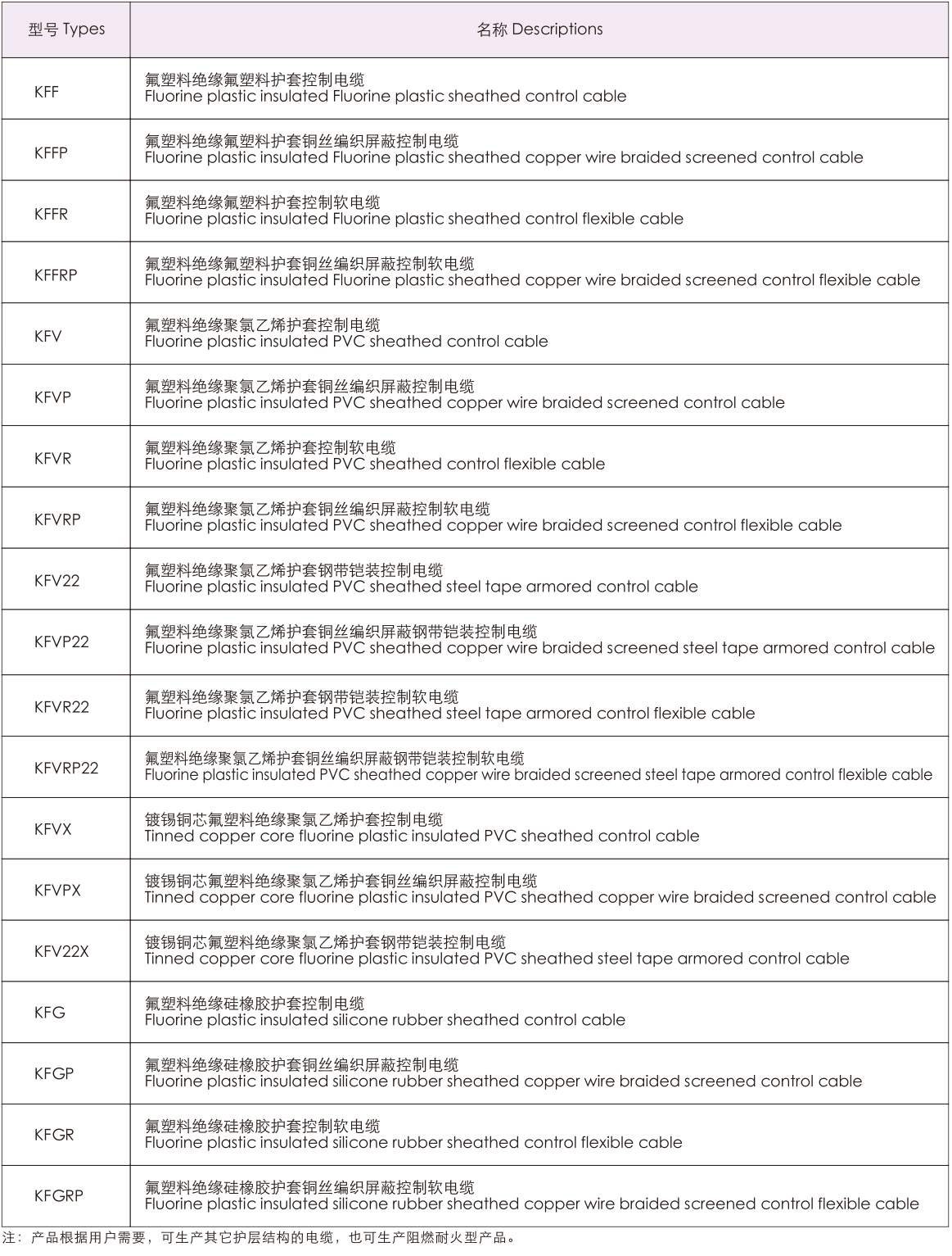 本產(chǎn)品適用干交流額定電壓450/750V及以下電器儀表的連接線和自動控制系統(tǒng)的傳輸線,它與普通塑料絕緣控制電纜相比,絕緣采用氟塑料,產(chǎn)品具有比普通控制電纜更高的耐熱等級,具有耐油、防水、耐磨、耐腐蝕性氣體、耐老化、不燃燒等優(yōu)異性能,主要適用于冶金、電力、石化等行業(yè)具有移動耐溫等特殊要求的場合。